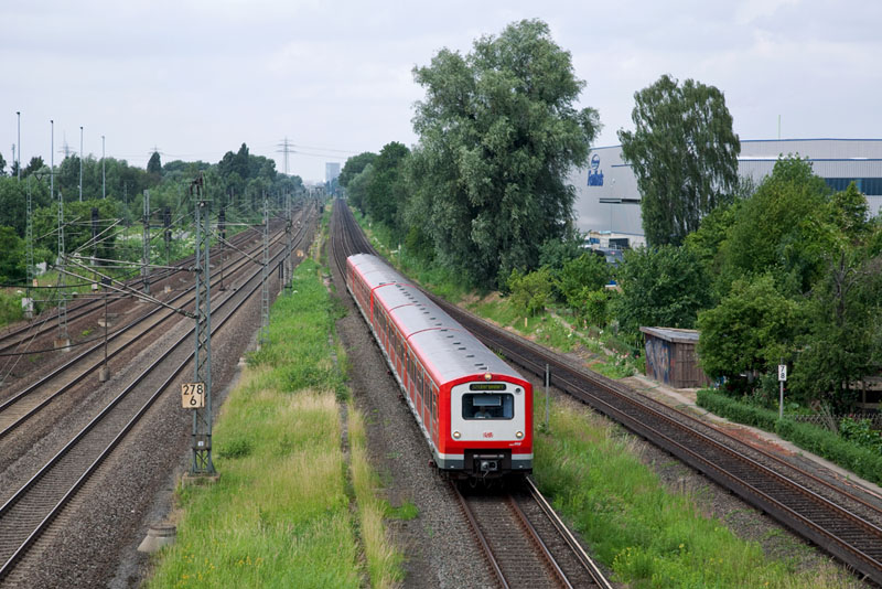 Nach Bergedorf fuhren 472 048 und 472 014 auf der S21 – im Hintergrund das ehemalige Polizeihochhaus von Hamburg. |