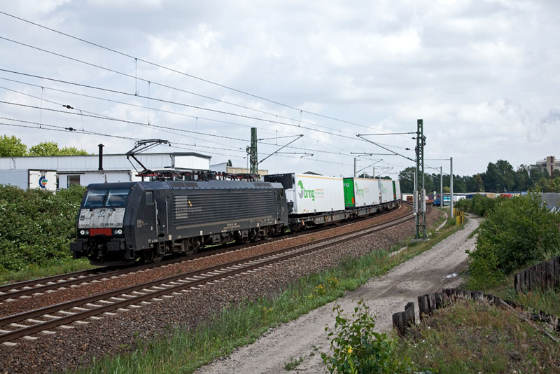 | Mittlerweile fährt die ES 64 U2-017 als 242.517 "Fitzgerald" für HECTORRAIL – mit dem ScandFibre Logistics nach Dortmund. Hamburg-Rothenburgsort, 23. Juni 2011 |