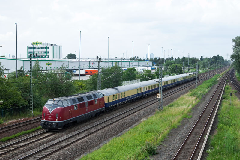 | Die schöne V 200 116 mit dem Rheingold-Zug von Köln nach Warnemünde! Hamburg-Billwerder Moorfleet, 23. Juni 2011 |